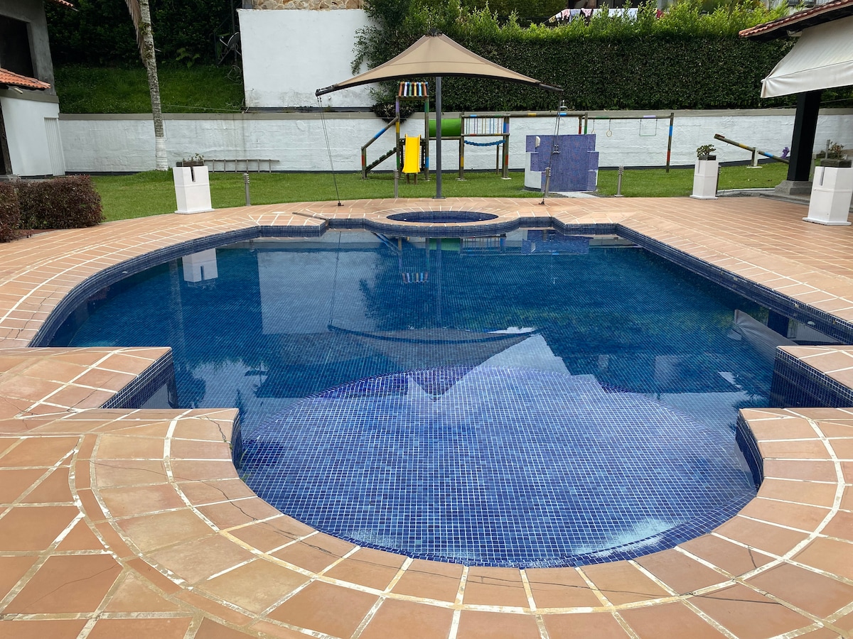 Spektakulært landsted i lukket område på vejen til Cerritos. Ideel til at koble af og slappe af midt i naturen, men meget tæt på Pereira. Privat swimmingpool og tyrkisk bad. Alle faciliteter og sikkerhed for familier med babyer. Fremragende beliggenhed, 150 meter fra hovedgaden ad asfalteret vej, 15 minutter fra lufthavnen, 10 minutter fra Ukumari Park, 10 minutter fra CC Unicentro. Supermarked mindre end 5 minutter væk. Vi taler engelsk for at kunne hjælpe udlændinge.
