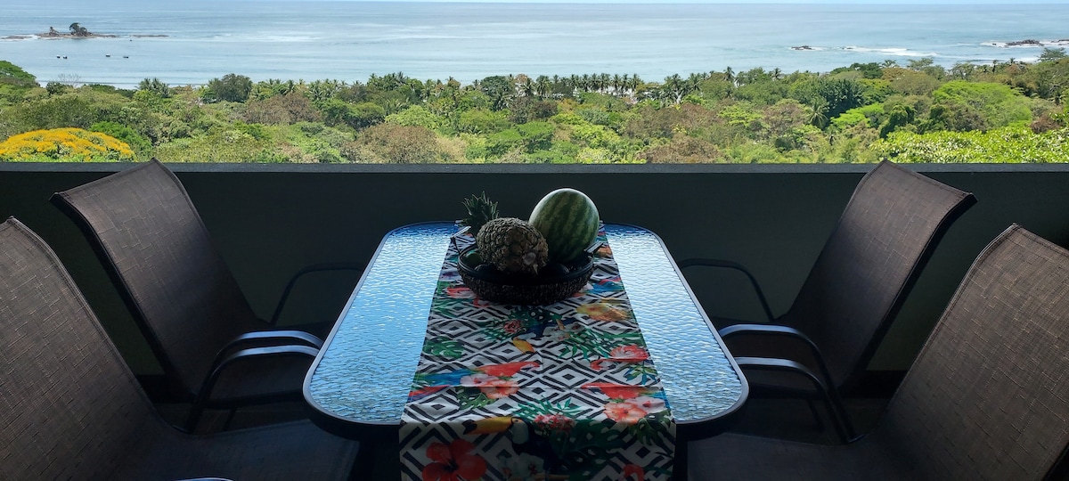 Tag til Condominio Marisol i smukke Dominicalito i Costa Rica, hvor sol, surf og natur mødes i perfekt harmoni. Denne lyse, moderne lejlighed har: - Fantastisk havudsigt fra stueetagen og den private terrasse ved soveværelset. – Adgang til børnevenlige pools få skridt fra terrassen i stueetagen. – Tæt på byen med masser af butikker og en række lækre spisesteder, men gemt væk for luksuriøs afsondrethed. – Omgivet af frodige tropiske omgivelser. - Vandfald 5 minutters kørsel væk
