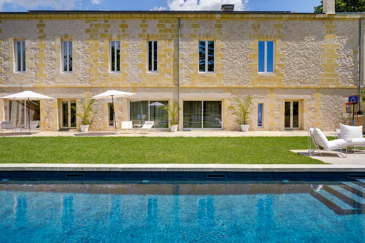 Luksus skræddersyet gîte med 4 soveværelser og udsigt over poolen.