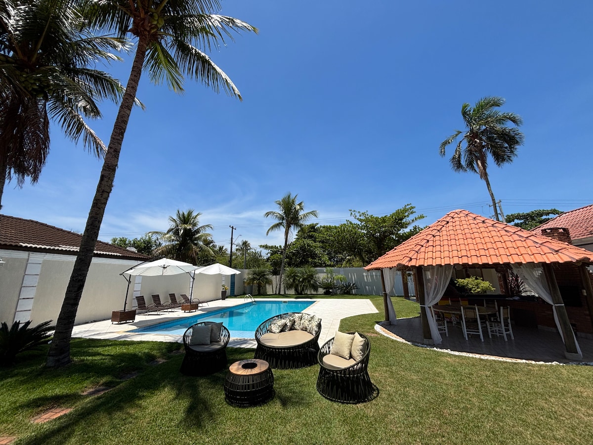 Uma das casas mais completas do guaruja ! piscina com hidro ,mesa de bilhar, tv na area externa com soundbar, quintal grande,churrasqueira,cervejeira ,5 quartos com Ar ( sendo 3 suites e 1 deles com hidro )vagas para 5 carros,cozinha toda equipada e mobiliada ,sala com tv,wifi,roupas de cama !!até 16 pessoas, 200 metros da praia 5 minutos a pé , 3 dos quartos com vista para a piscina 1 quarto no térreo! Altura do portao 1.84 !Nos consulte para mais informações 🌊 Check in e checkout a combinar!