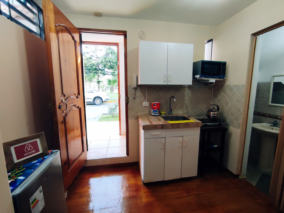 Económico, ideal para parejas, estudiantes, o viajes de trabajo y negocio. Asegura tus vuelos en el aeropuerto y escapa del tráfico de Lima. MiniDpto totalmente privado, con ecceso independiente, ideal para 2 personas, ubicación inmejorable, con vista al parque, primer piso. Seguro y tranquilo. El Mini es una habitación con baño completo incluído, agua caliente, cocineta. App Xuper Tv. canales señal abierta y películas de estreno. Wifi alta velocidad. No hay Tv por Cable. No permite mascotas.