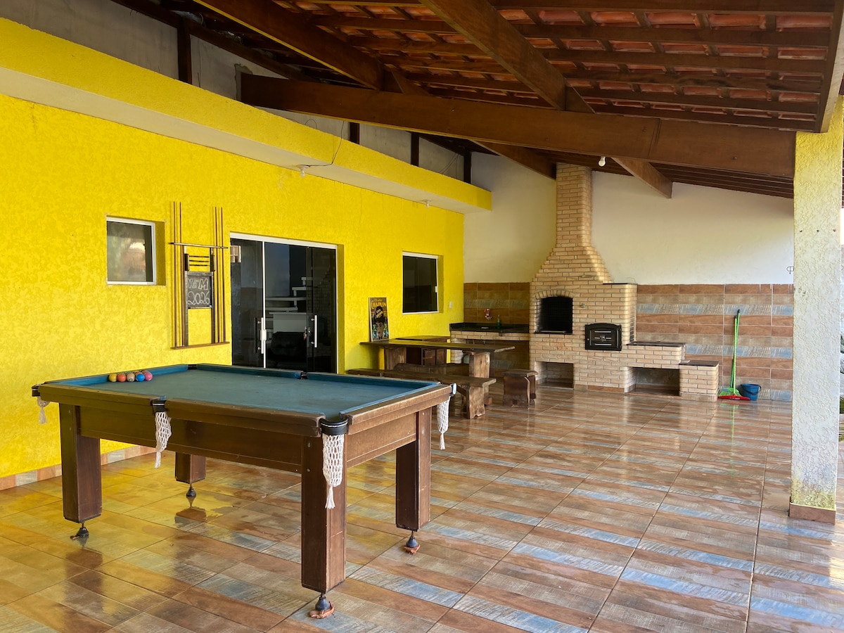 Raridade, 250 m fra stranden, 550 m2, pool, grill, 5 sovepladser, 3 badeværelser, 1 badeværelse, omklædningsrum, WiFi, kabel-tv, stue, altaner med hængekøjer, haver, rigelig plads med borde, stole, liggestole. Spilrum med poolbord, bordtennis og bordfodbold. Garagem til 4 biler. Elektrisk hegn, sikkerhed døgnet rundt. To kameraer udenfor for gæsternes og husets sikkerhed. Kun FOR FAMILIER. Feirinha. Kiosker Andre strande: Guaraú med Boulevard, Barra do Una, Cachoeiras.