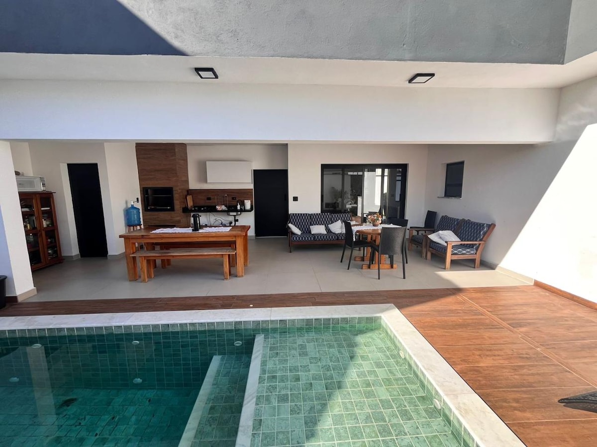 Gæstehuset (bygningen af huset) vil blive placeret, har en stor pool (7 x 4), 4 soveværelser (2 suiter), der er et andet hus på jorden, men isoleret af væggen (jeg bor i det andet hus, jeg bor i det andet hus, kan hjælpe) med privatliv i det lejede rum, garage 2 rum, Wi-Fi, 5 smartv, alle værelser har Ar cond. værelse integreret med køkken og grillplads, hus på den tredje blok af stranden i Peruíbe (ca. 600 m fra stranden). Brug af lyd ved lav lyd (OMGIVELSE) tillader vi ikke overskud.