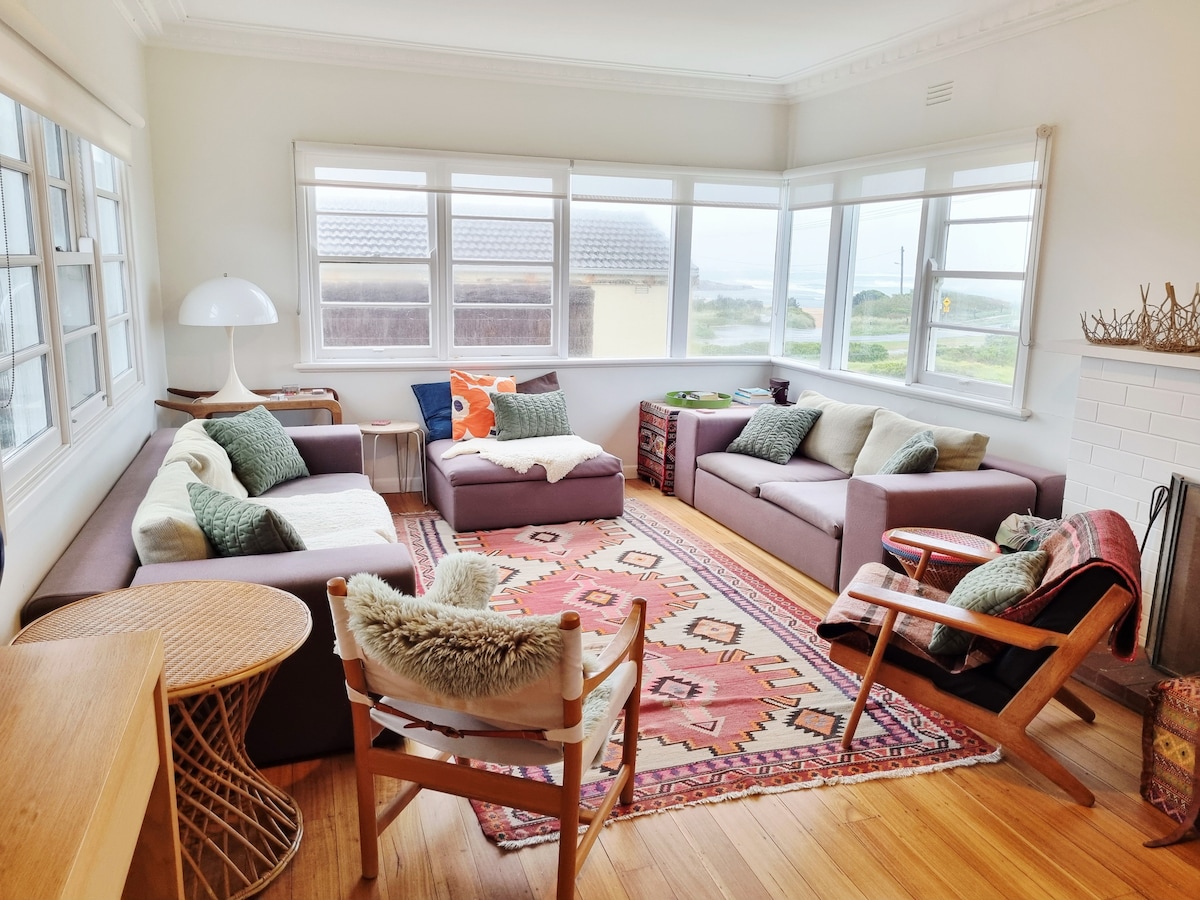 En idyllisk weekender og perfekt flugt fra dit travle liv for at slappe af og slappe af ved havet. Huset ligger selv med udsigt over det sydlige hav. Uanset om det er en familie, der mødes eller indhente venner, er Peterborough Beach House den ultimative base til at udforske denne fantastiske strækning af Great Ocean Road (20 minutter fra 12 apostle) . Åben stue, rummelige græsplæneområder, 2 x høje stole, babyporte til trappen og stort bad gør det nemt for familier med små at nyde