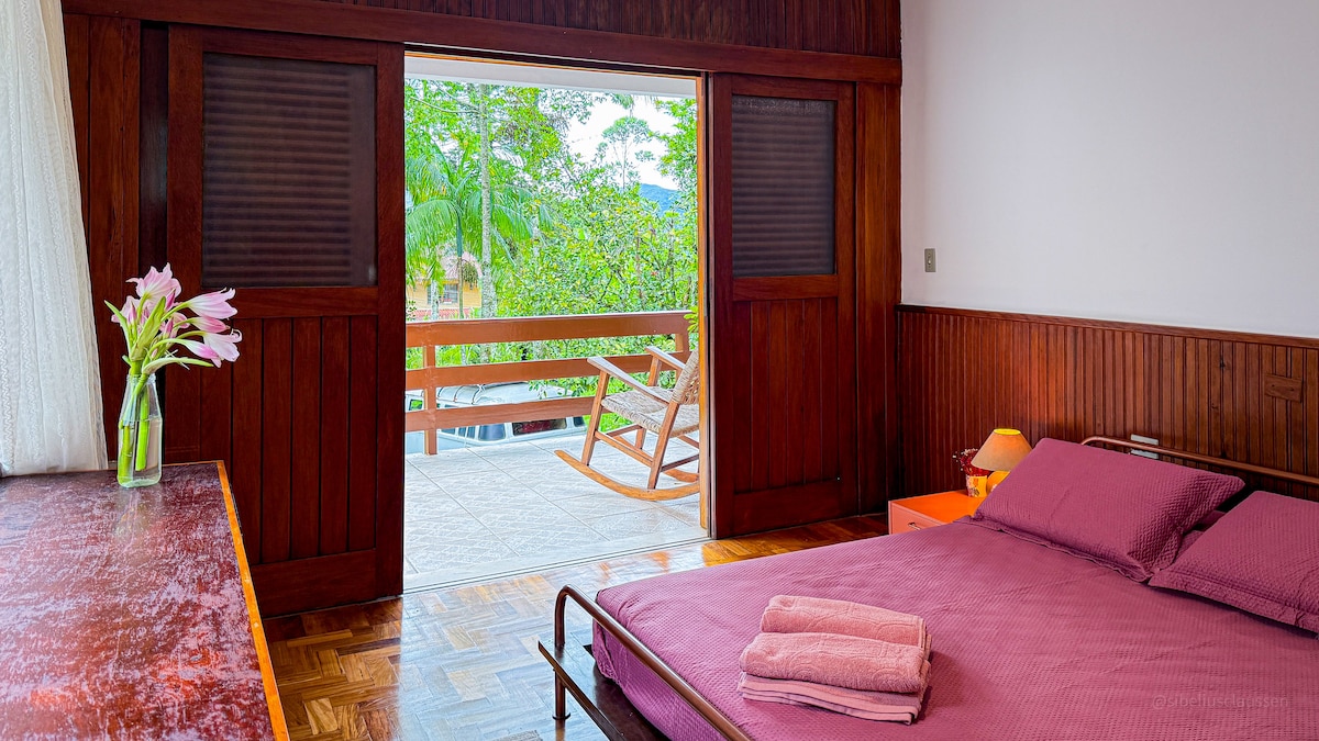 Bem-vindo a um cantinho onde o mundo parece respirar mais devagar. Estamos verdadeiramente no coração da natureza, longe do barulho e da pressa, mas com acesso fácil e encantador. Seu refúgio não é apenas a suíte, mas toda a natureza que a envolve, ar puro e uma vista lindíssima. O acesso se dá por uma rua particular com muito verde, recomendo veículo próprio ou uber.