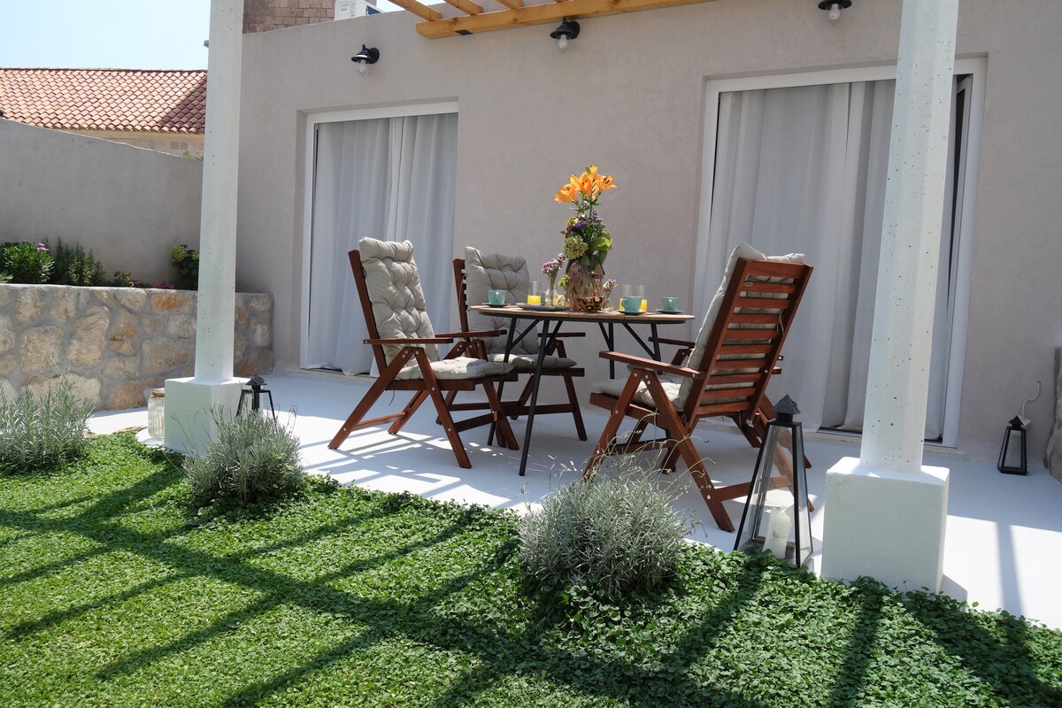 Our newly built apartment can accommodate up to 4 people (2+2).It has separate entrance and free parking space (car&boat). It features one bedroom, bathroom, living room with sofa bed, kitchen and balcony with sea view.Free Internet access and free parking are also available