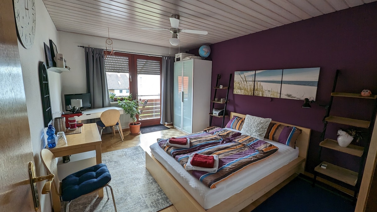 Stueetagen i et hus (57 m2): - stue, soveværelse, køkken, badeværelse, separat indgang, have - fuldt udstyret Beliggenhed: - nær Autobahn A92, 500 m fra afkørsel 3 - med bil: til lufthavnen 15 min, til München Messe 25 min, til tog S-Bahn 5 min (vi har en vægboks til hurtig opladning - 30 cent/kwh) - med offentlig transport: S-Bahn S1 til Münchens centrum 30 minutter til lufthavnen 25 minutter. - Gåafstand til S-Bahn togstation 20 minutter eller 10 minutter med vores cykler.