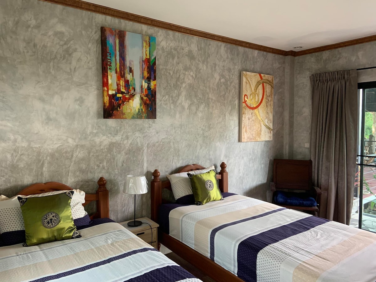Velkommen til Manora Garden i vores 'familiebungalow'. Der er to soveværelser og en lille stue mellem dem. Foran bungalowen er der en overdækket terrasse. Kan bruges til: - En familie på 4 (+1 ekstra) - Et par eller en enkeltperson (du vil have plads!) Du kan slappe af i vores hyggelige stue med bøger, kaffe/te/internet. Den grønne have er dejlig og rolig, mange fugle. Vi vil gerne hjælpe dig med at forberede vidunderlige ture. Vi kan arrangere ture og har cykler, eller du kan leje motorcykler for at udforske Phangnga.