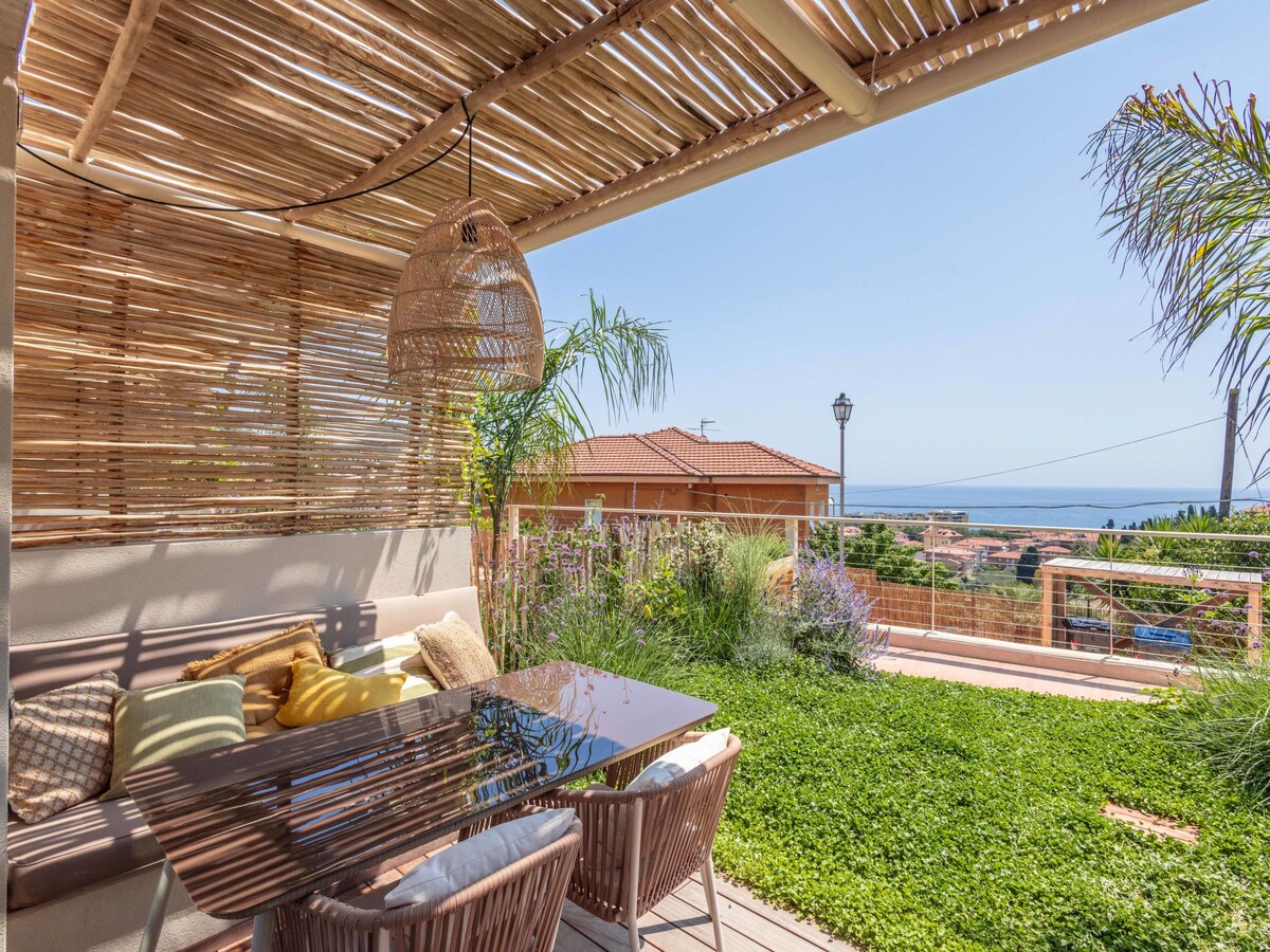 Sulla collina sopra il piccolo paese di Cipressa, a 3 km dalle spiagge di San Lorenzo e Santo Stefano e dalla pista ciclabile, l'alloggio è la dependance di un villino con una vista mare unica. E' la soluzione ideale per trascorrere una vacanza indimenticabile lontani dalla confusione, prendendo il sole sulla terrazza e facendo bellissime passeggiate guardando il mare.
