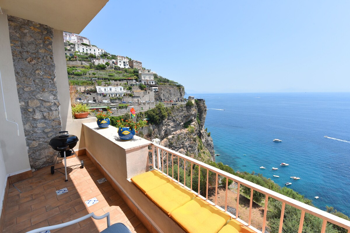 Ved siden af centrum af Amalfi, villa Angela, suspenderet mellem himmel og hav. Lejligheden ligger omgivet af frodig vegetation og ligger et par trin (ca. 30) fra hovedgaden, hvor du kan parkere din bil. Fra lejligheden kan du nyde en betagende udsigt over Amalfis kyst og havet