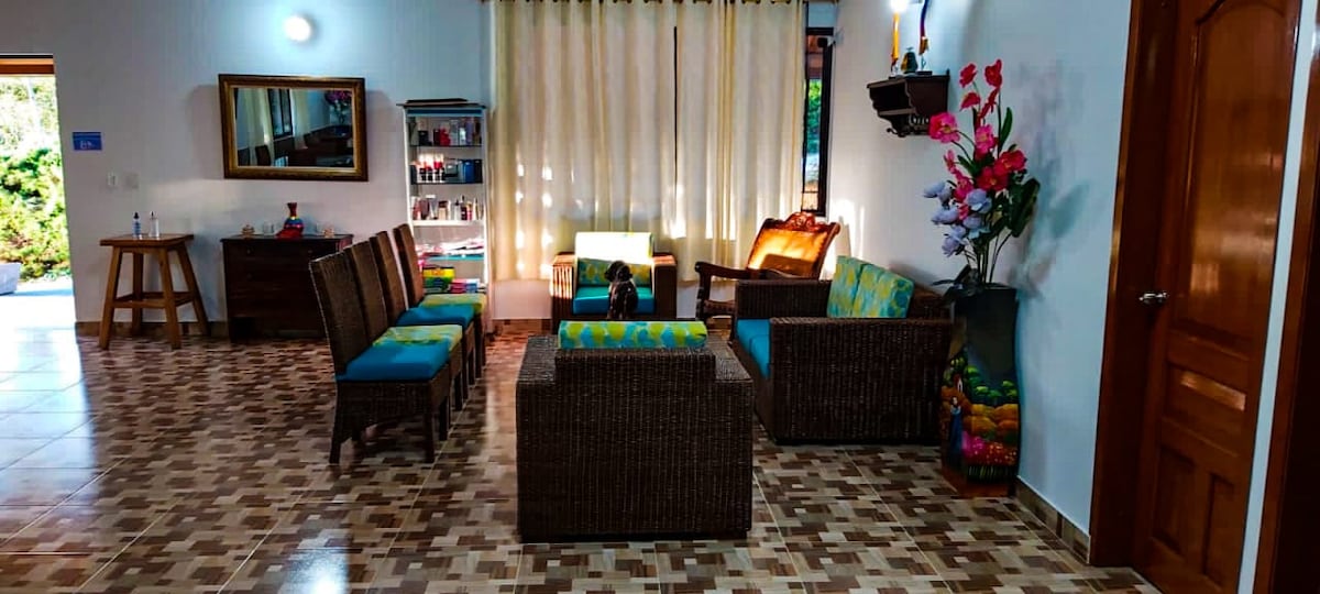 Det er en fuldt udstyret, frisk hytte med en stor haveterrasse foran og en smuk udsigt over de østlige bakker på vejen til Cucuta. Fællesområderne deles med gæsterne i de andre hytter (vi har fire hytter mere) Begivenheder er ikke inkluderet i hverken loungen eller gæstehuset.