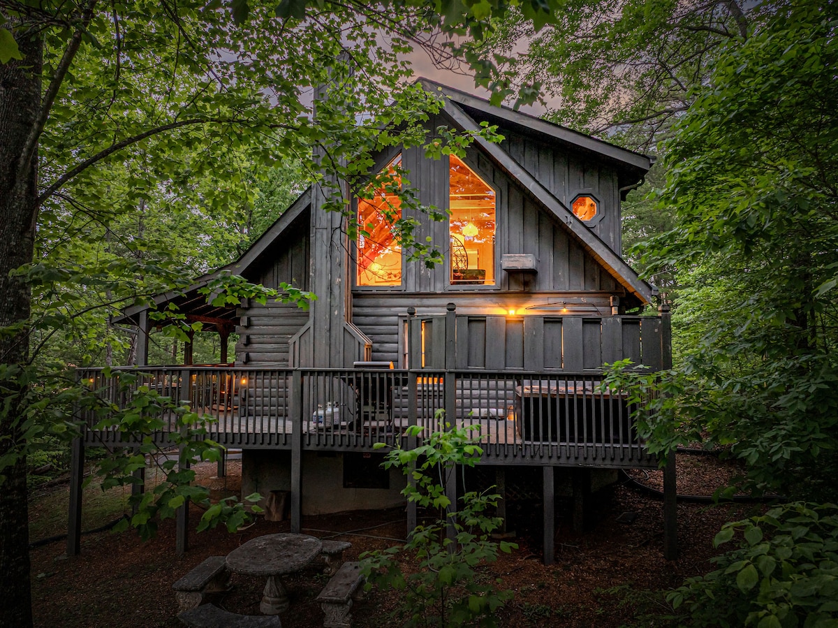 Escape to The Nocturnal Nest, a hidden gem 💎 tucked away amidst the beauty of nature🍃. This cozy cabin offers an idyllic escape for lovebirds celebrating milestones or simply for the fun of it🥰! Create your own luxurious paradise🍹🏝️at home with a personal theater, spacious outdoor patio with a fire pit, hot tub, and BBQ grill. 📍17 min to Pigeon Forge 📍25 min to Gatlinburg 📍57 min to Knoxville ✈️ 📍18 min to Dollywood 🎢 📍24 min to National Park 🌲 📍30 min to Ober Ski Mountain 🏂⛷️