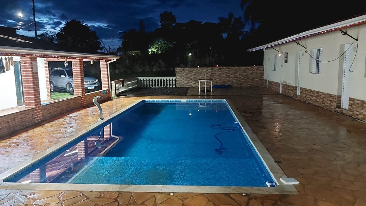 Vores gård i Pilar do Sul er et fristed midt i naturen med 100 % asfalteret adgang, komfort og privatliv. Ideel til familier, venner og små grupper, der leder efter hvile og samvær. Boligen har et stort grønt område, swimmingpool, grill, fodboldbane, spillerum og et stort og hyggeligt hus med flot finish og meget mere. Perfekt til weekender, helligdage og særlige øjeblikke. - Privat gård, jeg er vært for én familie ad gangen med stor hengivenhed og omsorg.