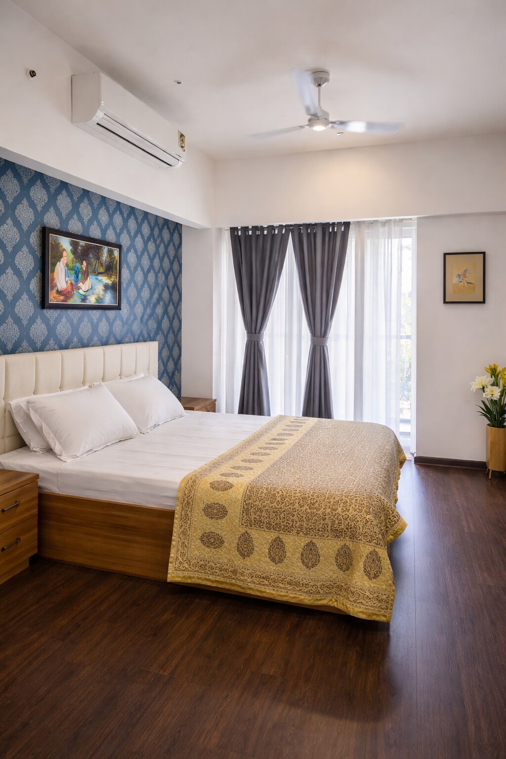Welcome to SUKOON ➜ A home named after peace, tranquility, and serenity ➜ Perched on the 16th floor facing the Golf course, Sukoon opens its arms with an inviting warmth and a quiet luxury that instantly makes you feel you’ve arrived at your own private sanctuary. ➜ Every corner has been thoughtfully crafted to feel plush, homely, and effortlessly elegant. ➜ Perfect For: Staycations | Business Trips | Weekend Getaways | Spiritual Retreats | Couples & Families