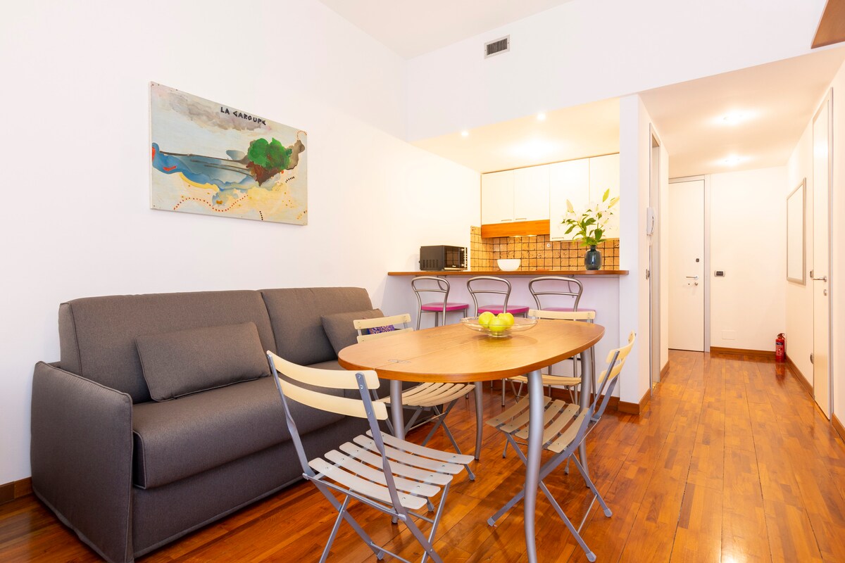 Vores smukke lejlighed i Brera tilbyder den perfekte løsning for dem, der ønsker et hjem væk fra hjemmet – det være sig for par, forretningsrejsende eller familier på fire. Nyd freden og roen i vores lejlighed, der vender ud mod gården, mens du bor i det centrale Milano. Indretningen er i topklasse. Den består af et soveværelse med et rummeligt skabsopbevaring og en stue med en dobbelt sovesofa med en memory foam topper. Gæsterne får et praktisk nøglefrit selvindtjekningssystem.