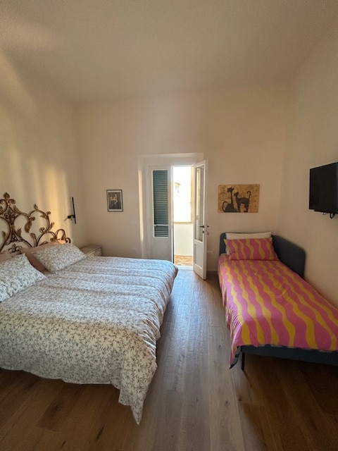Grazioso appartamento al primo piano, appena ristrutturato. Distante 5 min a piedi dal centro storico e 10 min a piedi dalle spiagge cittadine. Nei pressi si trovano attività commerciali di prima necessità. - camera con letto matrimoniale e lettino singolo - cucina con piastre ad induzione, forno a microonde, frigorifero e poltrona letto. - due balconi - bagno - si forniscono lenzuola,asciugamani saponi e phon. - macchina del caffè a capsule, moka e stoviglie.