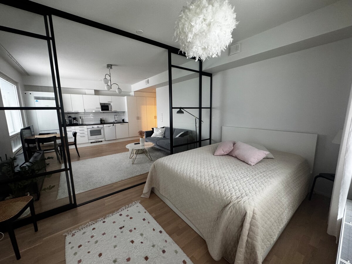 Velkommen til en af Tammerfors' fineste lejlighedsbygninger. Senge af høj kvalitet venter dig i lejligheden med rent sengetøj klar. Området har charmerende udendørsaktiviteter lige ved bredden af Lake Pyhäjärvi. Til dagligvarebutikken 200 m. 400 m til busstoppestedet, som tager dig til centrum på 15 minutter. Gå til Messukeskus 15 minutter. Prisbillig parkering lige på parkeringspladsen foran hoveddøren med e-parking-appen.