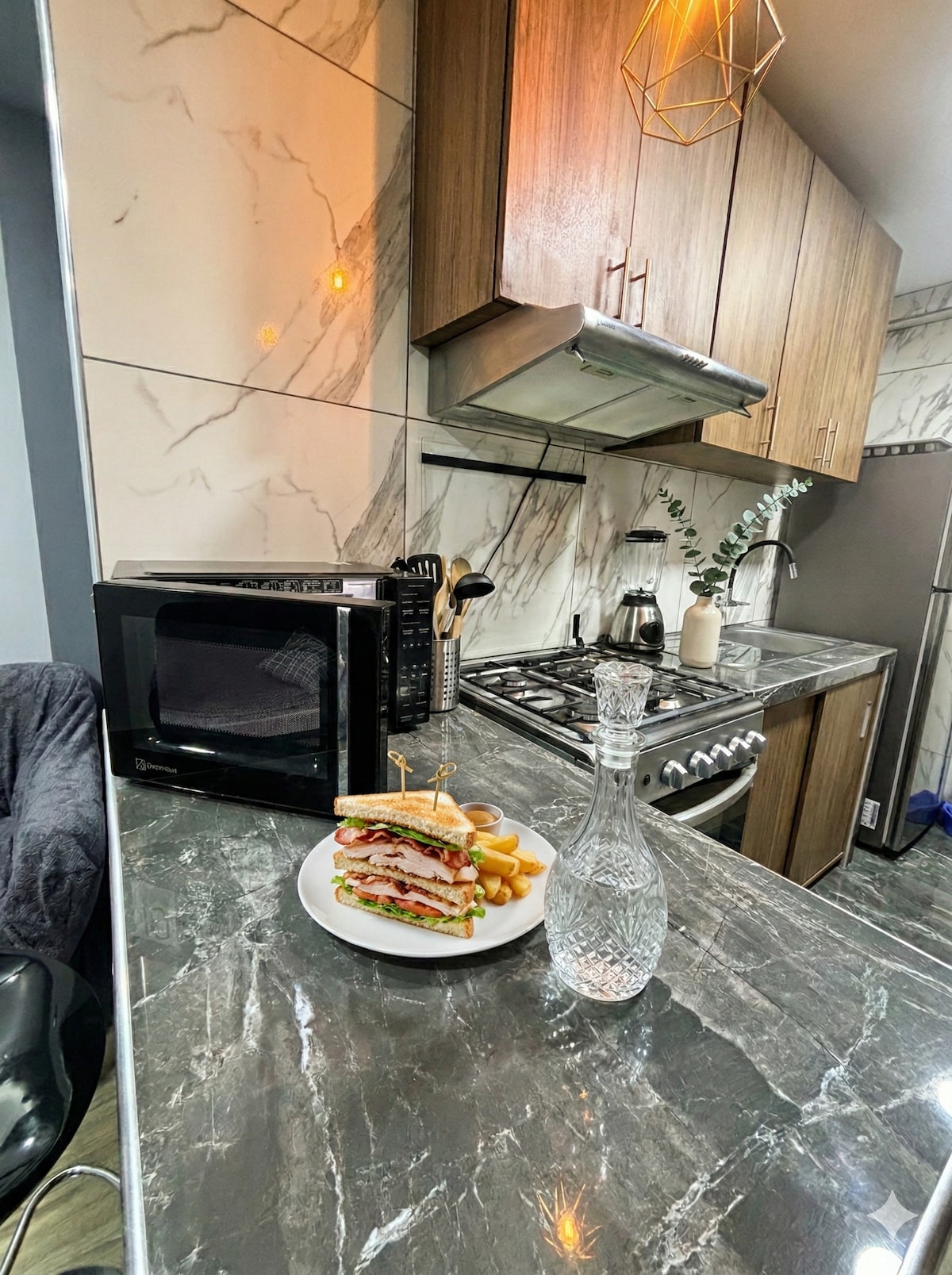 Perfekt til par eller rejsende, der ønsker en luksuriøs og fredelig oplevelse. Nyd et stort soveværelse med en kingsize-dobbeltseng, privat badeværelse, aircondition, mørklægningsgardiner og smart-tv. Privat pool, perfekt til afslapning i solen med masser af privatliv. Fuldt udstyret køkken, stue og spisestue med moderne indretning. Terrasse med førsteklasses Kamado, så du kan nyde udendørs spisning. Panoramisk udsigt fra et eksklusivt rum i lejligheden.