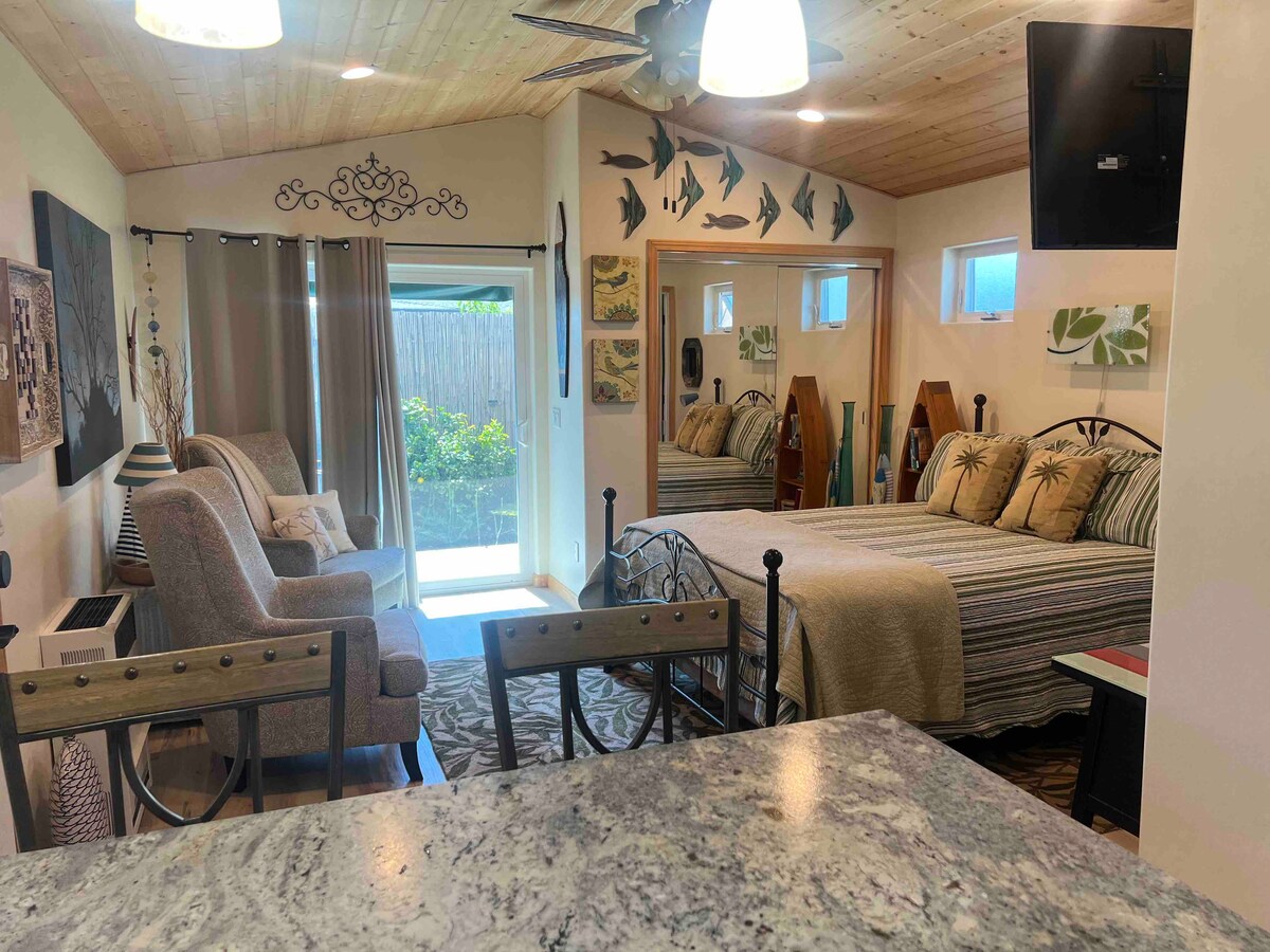 Studiet er et unikt, fuldstændigt renoveret 1940'er-studie med udsigt over en økologisk gård på en hektar, der ligger kun få minutter fra den historiske landsby Arroyo Grande. 6 miles til stranden, 3 miles til vinsmagning i Edna Valley, og en smuk 12 miles køretur til SLO, tilbyder studiet noget for enhver smag. Med et stort, fuldt udstyret køkken, rummeligt opholdsområde og udendørs terrasse med grill og propanildsted er dette det perfekte sted til din afslappende Central Coast-ferie.