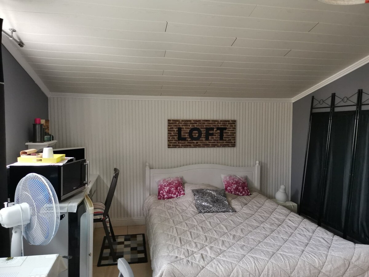 Uafhængigt soveværelse på ejerens grund med en stor dobbeltseng 160×200, babyseng Sengetøj og håndklæder er inkluderet Ingen kogeplade, kun mikrobølgeovn køleskab bordstole brusekabine tv ,WiFi vendbar aircondition Toilet terrasse med bordstole og grill indgangen gennem den lille grå port med klokken , øverst på trappen til venstre . Stor privat parkeringsplads. Nøgleværelse, roligt område Tæt på butikker, kredsløb, barakker, hospital, Puy du Fou 60 km