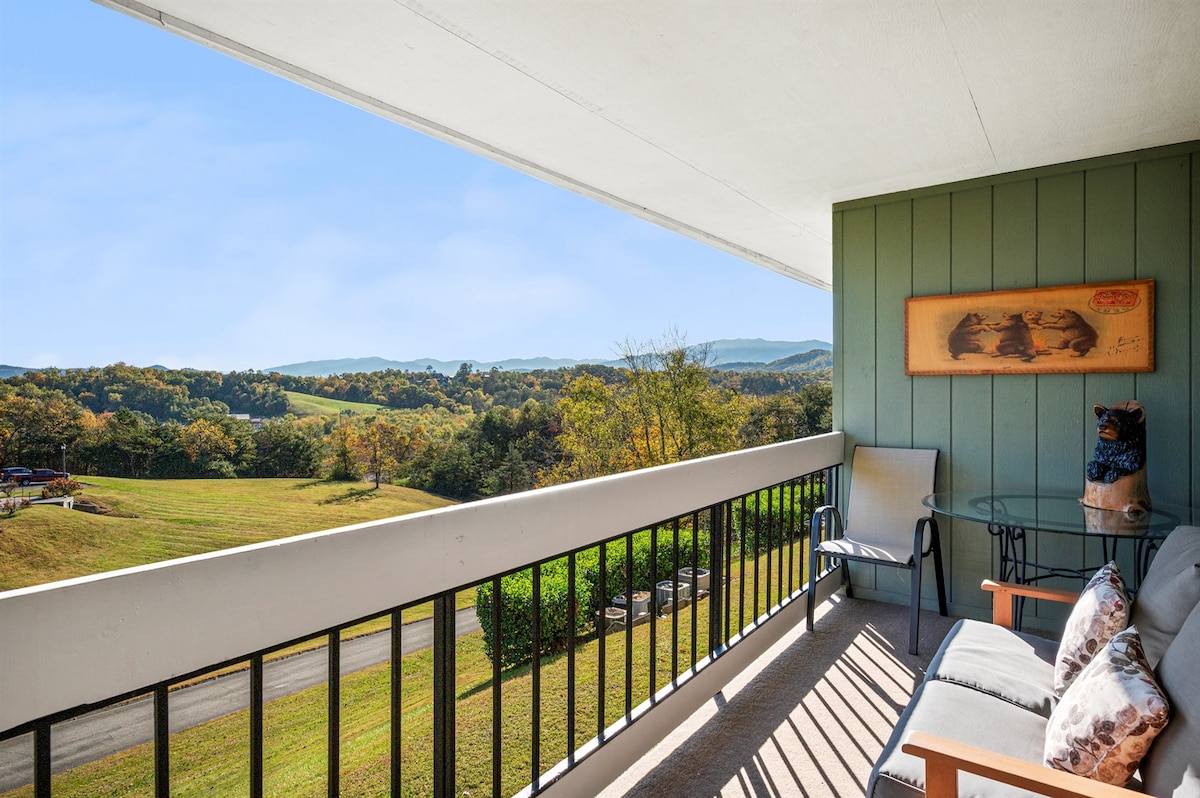 Nyrenoveret lejlighed på første sal med et soveværelse og smuk udsigt over bjergene. Kun 3 miles til downtown Gatlinburg og 2 miles fra hovedindgangen til nationalparken. KINGSIZE-SENG samt separat tv-visningsområde. Komplekset har udendørs pool og spabad. HØJHASTIGHEDS-WI-FI. Køkkenet er komplet med apparater til at tilberede dit yndlingsmåltid. Hvis du leder efter fred og ro væk fra travlheden i centrum, men stadig tæt på det hele, er dette stedet. Alt, hvad naturen har at byde på.
