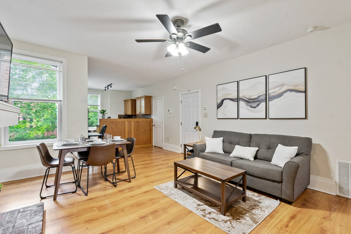 Nyd en stilfuld 1-værelses lejlighed på første sal med et gourmetkøkken med luksusapparater og et rummeligt opholdsområde, der er perfekt til afslapning eller underholdning. Soveværelset med queensize-seng giver en behagelig nats søvn. Højhastigheds-wi-fi og et dedikeret arbejdsområde gør den ideel til forretningsrejsende eller fjernarbejde. Adgang til fælles parkering (6 pladser, først til mølle). Beliggende i nærheden af West Penn Hospital og UPMC Shadyside, perfekt til par, besøgende familier eller medicinske ophold.