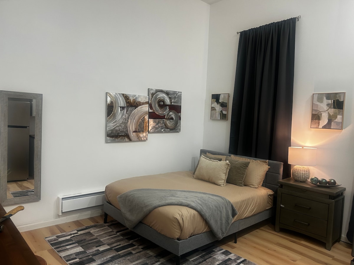 Hyggelig kunstnerlejlighed, queensize-dobbeltseng stilfuld + wi-fi!