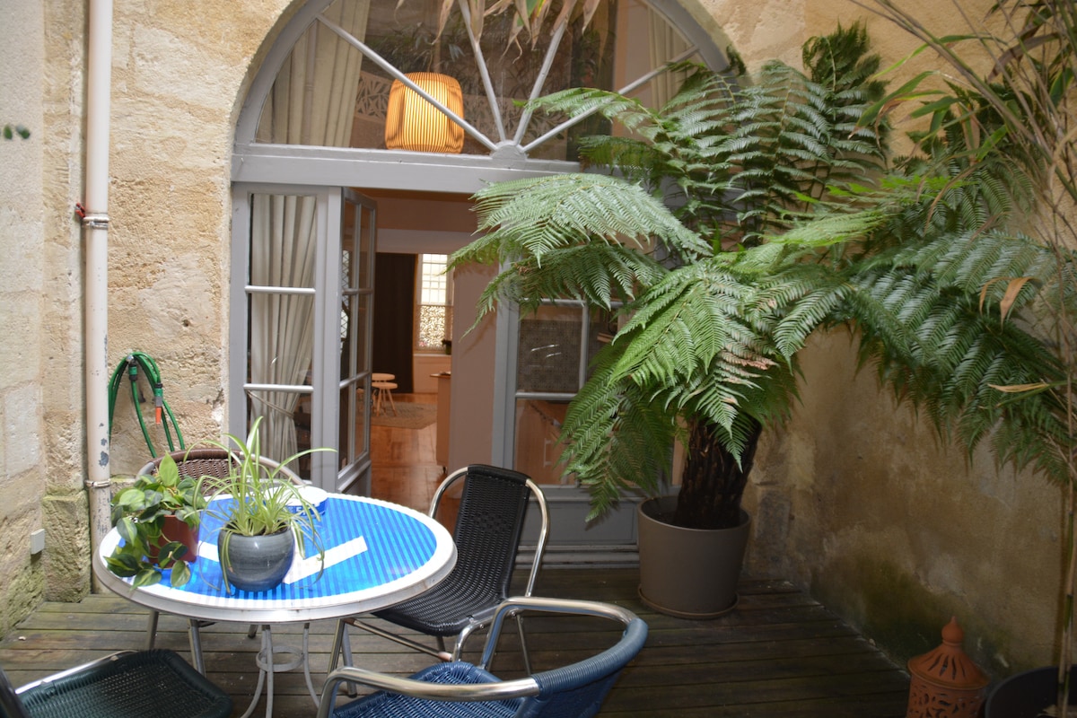 I stueetagen i et charmerende arkitektonisk kompleks fra det 17. århundrede ligger denne fuldt renoverede lejlighed i byens centrum i en meget stille gade i det historiske centrum af Bordeaux, Saint-Pierre-kvarteret Derudover åbner dens vinduer ud til en stor indre gård, der er isoleret fra gaden af en smuk karetport Med sin plads, sin kirke, sine brostensbelagte gader og sine mange restauranter og butikker, er Saint-Pierre kvarteret et sted fuld af charme, hvor livet er godt.