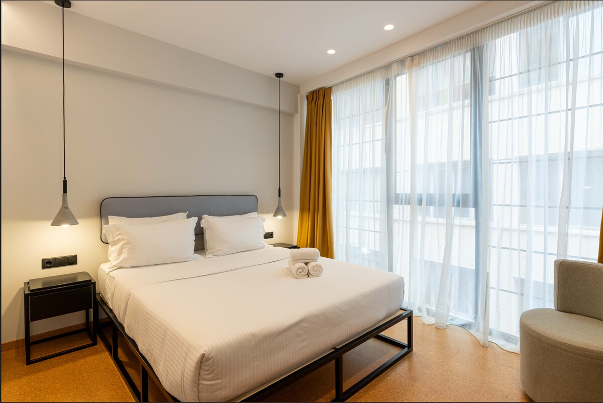 An Innovative apart hotel concept that combines the convenience of a hotel with the comforts of a home. Location: A price touristic location -4 Minute walk from the famous Ermou street - 7 minute walk from Monastiraki square With our self check-in process, you'll have the freedom and privacy to come and go as you please. Plus, our spacious and stylish suites offer all the amenities you need for a comfortable stay, similar to a hotel room. There is no kitchen!!!