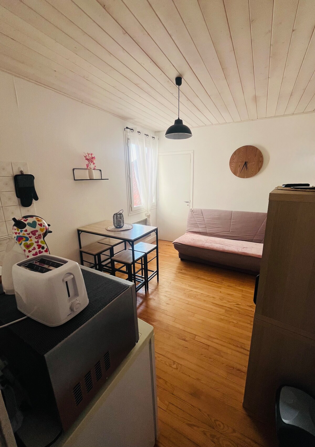 Slap af, du vil ikke mangle plads i denne rummelige og behagelige bolig. Du vil bo i denne 51m²store T2 bestående af et køkken, der er åbent til stuen, et soveværelse og et badeværelse. Indkvarteringen er fuldt udstyret med alt, hvad du har brug for til et behageligt kort eller mellemlangt ophold Kaffemaskinen er 1 Dolce Gusto Vinduerne i boligen er uigennemsigtige for dit privatliv under hele dit ophold, men garanterer tilstrækkelig lysstyrke