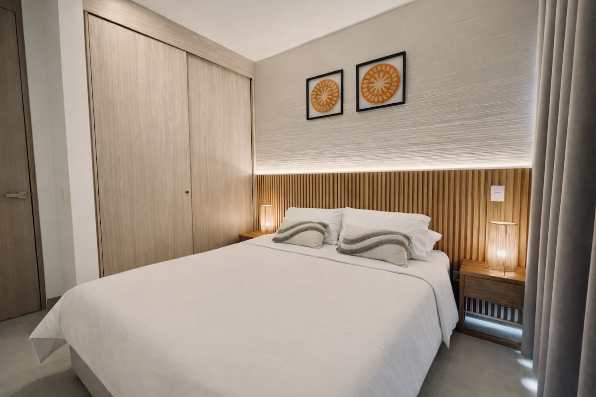 Bo på Samaria Club de Playa, et eksklusivt netværk ved stranden i Santa Marta, der er kendt for sin ro og sine faciliteter i resortstil. Denne lyse og komfortable lejlighed er designet til et afslappende ophold og har en privat balkon med en behagelig udsigt over havet. Højdepunkter 👉 Bygning ved stranden med privat adgang til stranden 👉 Flere pools, herunder en infinity-pool 👉 Fitnesscenter og jacuzzi 👉 Privat balkon med havudsigt fra siden 👉Højhastigheds-wifi 👉 Elevatorer og parkering