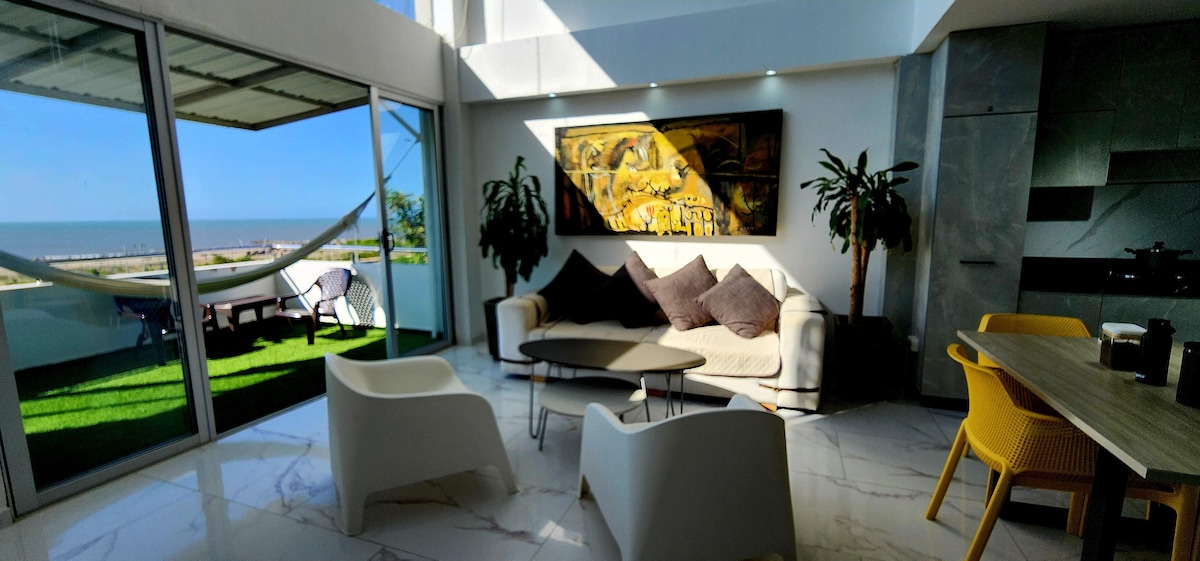 Eksklusiv lejlighed med panoramaudsigt over havet (9. etage), kun 200 meter fra stranden, med en smuk skov i midten (1. havlinje). Ny bygning i Playa Mendoza, 30 minutter fra Barranquilla og 50 minutter fra Cartagena. Reservado, med privat overvågning, kirke, politistation, restauranter og naturlige mangrover. Det har 2 soveværelser, to badeværelser, central aircondition, balkon, parkering og fremragende fællesområder.