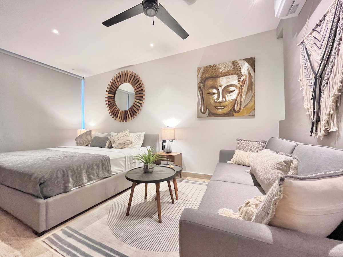 Oplev indbegrebet af komfort og luksus i vores studiolejlighed, der kan prale af en kingsize-seng, en sofa med kingsize-seng og nem adgang til den pulserende madscene i Playa del Carmen, herunder en række veganske muligheder. Book dit ophold nu, og gå i gang med et kulinarisk eventyr, mens du nyder skønheden ved denne ekstraordinære destination!