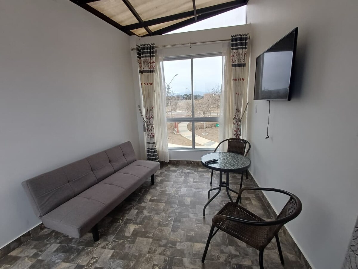 Hytte i eksklusiv lejlighed Fundo Pradera (Km 92,5 Panamericana Sur). Ideel til at koble af og tilbringe uforglemmelige øjeblikke med familie og venner. Slap af og indånd frisk luft. Nyd landskabet, klimaet, swimmingpoolen, bålet, grillen og en smuk solnedgang eller se stjernerne. Mere end 700 m jord. Lejlighed med 24-timers sikkerhed, vandresti, cykel, udsigtspunkt. Beliggende 7 minutter fra boulevarden og 5 minutter fra stranden.