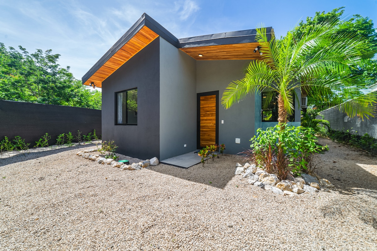 1 km fra stranden, små private bungalows i loftsstil, der er udstyret, så du kan nyde din rejse komfortabelt. Vi er tæt på smukke strande såsom Avellanas, Junquillal og 1 km fra Playa Negra (2 minutter i bil), en af de bedste bølger i Costa Rica. Også gåafstand til restauranter og minimarkeder. Den har højhastigheds-WiFi, A/C, udstyret køkken, queensize-seng, lufttætte PVC-vinduer, personlig sovesofa, privat badeværelse med varmt vand og egen terrasse.