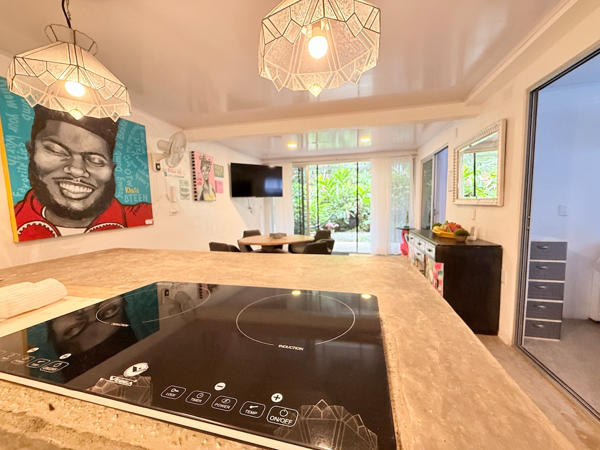 Charming Caribbean studio cabina in a magical natural private jungle enclave with 2 other cabinas. Positioned on the side of the Ernesto River, enjoy the use of our kayaks to meander to the beach or up river for a jungle adventure. Fully equipped kitchenette. 5 minute walk to several restaurants. Walk to Punta Uva Beach, named one of the top 25 beaches in the world. Immerse yourself in nature while only a 15 drive to Puerto Viejo for fun, touristy night life.