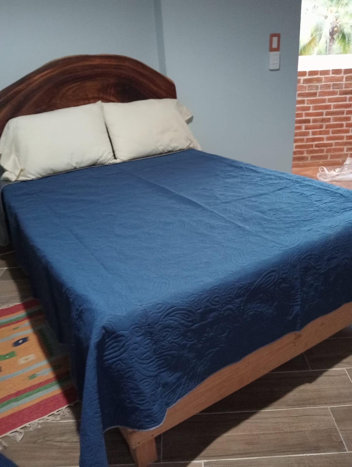Smukt værelse med et smukt træ indeni. Vi vil gerne redde den, så hvis du kan lide naturen, er dette rum ideelt for dig. Den har 2 ventilatorer, en loftsventilator og en gulvventilator, aircondition og en lille minibar; sengen er en dobbelt memory foam-seng. Badeværelse og bruser udenfor. Deles ikke med nogen. Vi har Starlink-internet. Pd. Vi har ikke varmt vand.