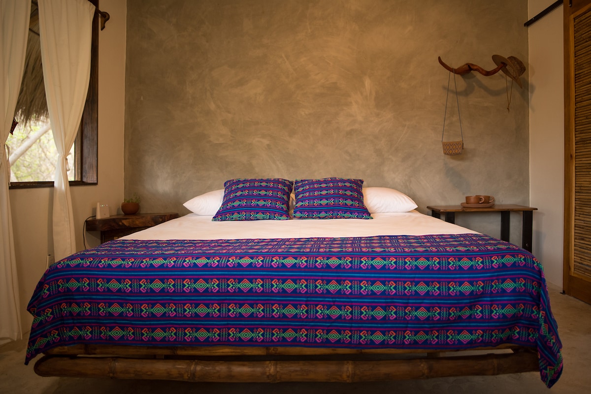 Discover our lovely studio in Aragon, nestled between Zipolite and Mazunte. This studio apartment offers a laid-back atmosphere with a queen bed, private kitchen and terrace. Embrace the warmth and charm of this space, complete with mosquito nets for added comfort. The apartment stays naturally cool, providing a welcome respite on warm days. It's not just a place to stay; it's a peaceful escape where you can unwind and feel at home. Perfect for solo travelers or a couple.