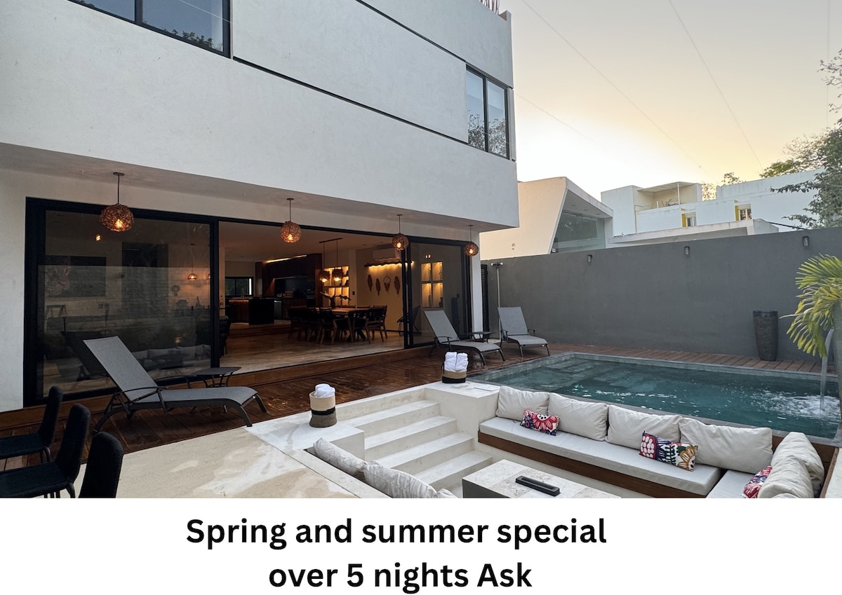 Smukt luksuriøst middelhavshus i et meget sikkert område. Cirka gåafstand: - 7 minutter fra Walmart supermarked - 10 minutter fra 5th Ave. (det vigtigste) - 13 minutter ADO busterminal - 15 minutter til stranden Bo i et hus med topfinish, pool, terrasse på første og anden etage. Værelserne har aircondition, private badeværelser, ventilatorer, wi-fi med mere. Perfekt til familier, par eller venner. Book og nyd din tid i Playa del Carmen!
