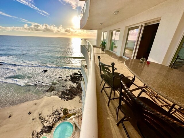Please note: not suitable for children. No pets due to severe allergies. Private oceanfront jacuzzi on your balcony in Rosarito. Floor-to-ceiling ocean views make you feel like you’re floating above the water. Open-concept space with a warm, elegant feel. Large curved balcony offers exceptional privacy—perfect for sunsets and relaxing in the jacuzzi. Watch dolphins in the morning and whales in season. Electric blinds, ceiling fans, and new outdoor furniture .