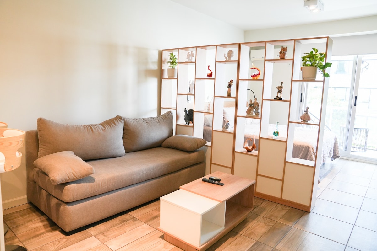 Lys, fredelig og smagfuldt designet studio lige ved Plaza Armenia – det livlige hjerte af Palermo Soho. Nyd et luftigt sted med hurtig internetforbindelse på 500 Mb/s, der er ideel til arbejde eller streaming. Bemærkelsesværdigt stille og afslappende – perfekt til dyb søvn – med mørklægningsgardiner, der sikrer totalt mørke. Der er også plads til let motion eller yoga med valgfrit udstyr efter anmodning. Gå udenfor til caféer, restauranter, butikker, yoga, tango og håndværksmarkedet i weekenden.