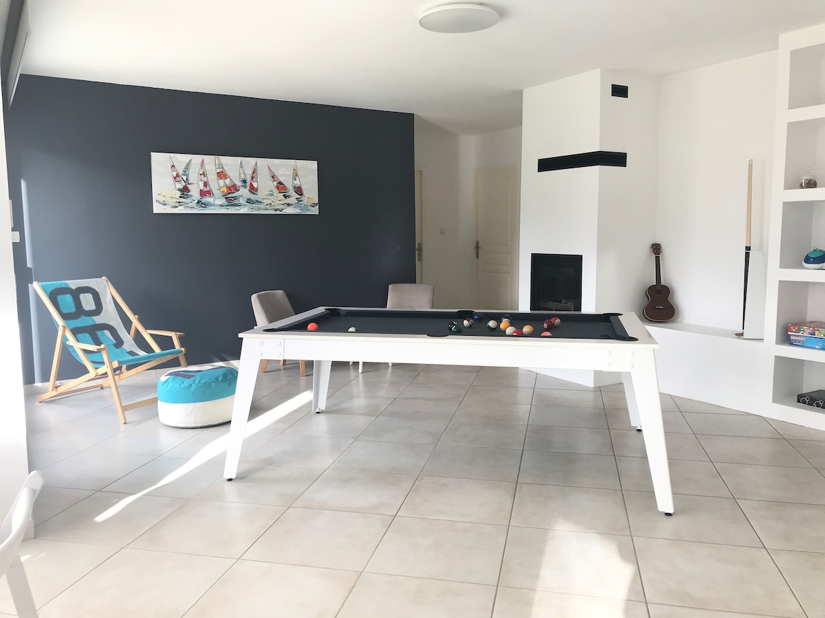 5 ud af 5 i gennemsnitlig bedømmelse, 6 omtalerLyst hus, billard og cykler tæt på strande