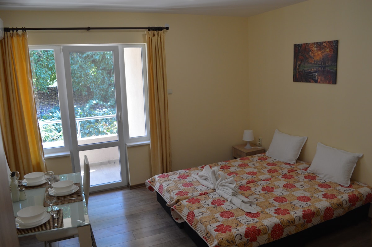 Velkommen til mit helt nye og hyggelige sted, designet med masser af kærlighed,omsorg og tanke, så du kan få et virkelig afslappende ophold i Plovdiv. Bygningen ligger lige foran International Fair Exibition, blot en kort gåtur til centrum på den anden side af den smukke Maritza-flod. Kvarteret er virkelig livligt, kommunikativt og sikkert. Jeg vil med glæde møde dig og imødekomme dig personligt, så du straks vil føle dig som en gammel ven, der kom på besøg:)