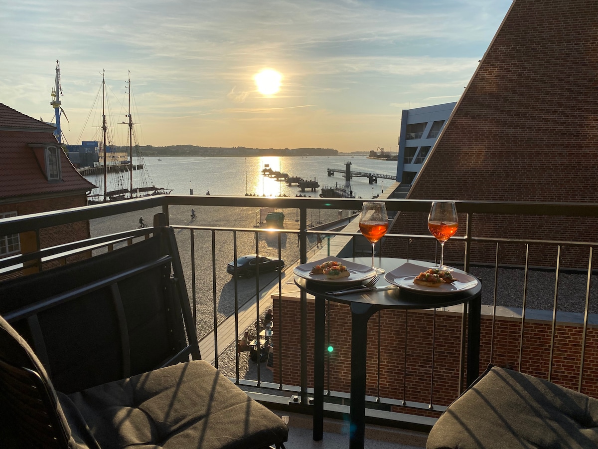 Luksuriøs havnelejlighed med sauna og havudsigt
