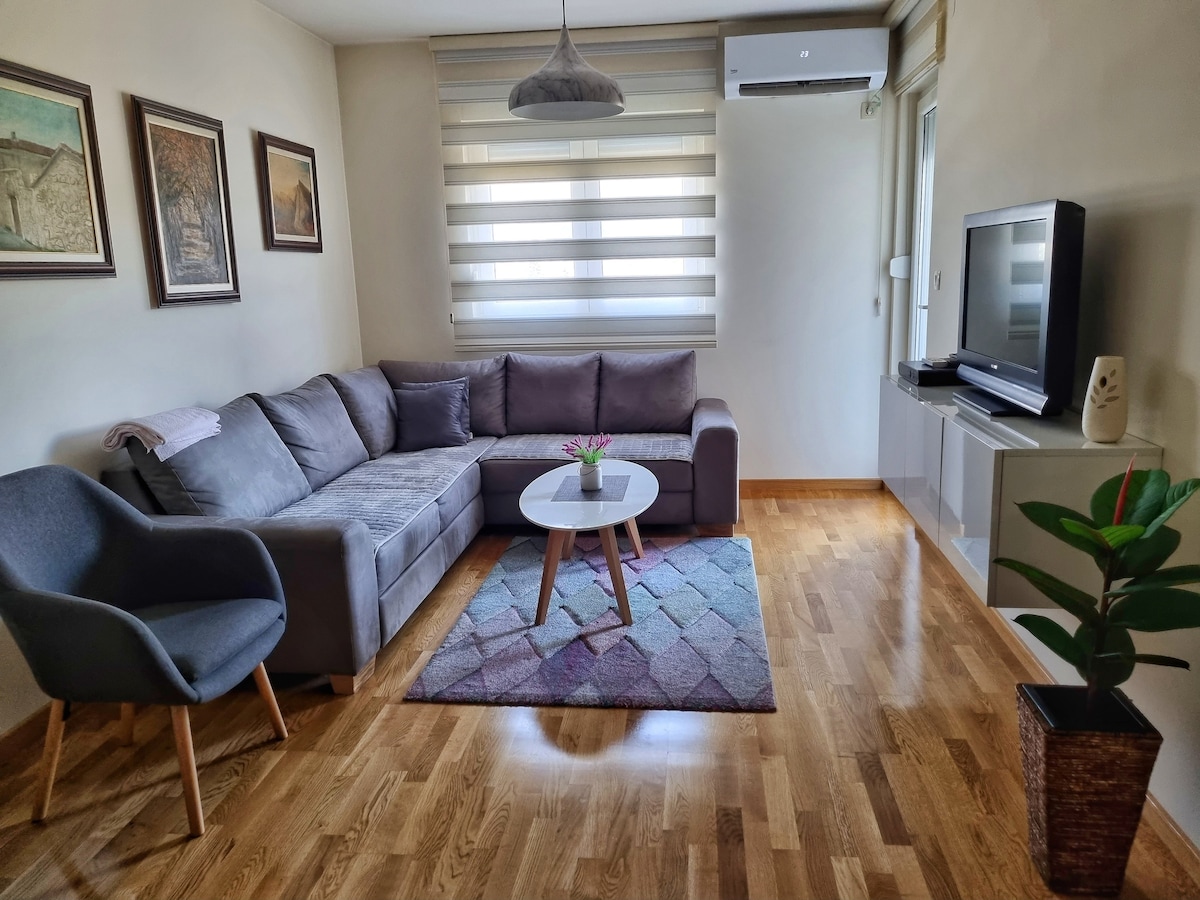 Lejlighed beregnet til fornøjelse og behagelig ferie. Du vil føle dig komfortabel og helt sikker. Lejligheden ligger i nærheden af floden Moraca og er egnet til rekreation og afslapning. I nærheden af bygningen er der en park, der er egnet til børn og har en legeplads. Miljøet er meget stille. Millennium Bridge forbinder dig til byens centrum og tager 10 minutter at gå. I nærheden er der mange caféer ,restauranter ,supermarkeder ,apoteker ...