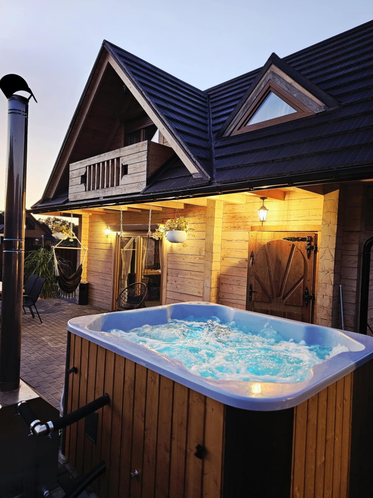 Luksuriøst, meget komfortabelt hus i stil med en "moderne lade" med et areal på ~60 m2. beliggende på et roligt sted ca. 10 minutters gang fra spaparken. Det har 2 etager. I stueetagen er der en stue og et fuldt udstyret køkken med glasvæg med udgang til den rekreative terrasse, badeværelse med dobbeltvask, bruser og sauna. Gæster har adgang til en vaskemaskine. Ovenpå er der 2 soveværelser. Udstyr: aircondition, tv, komfur, opvaskemaskine, vaskemaskine, sauna.