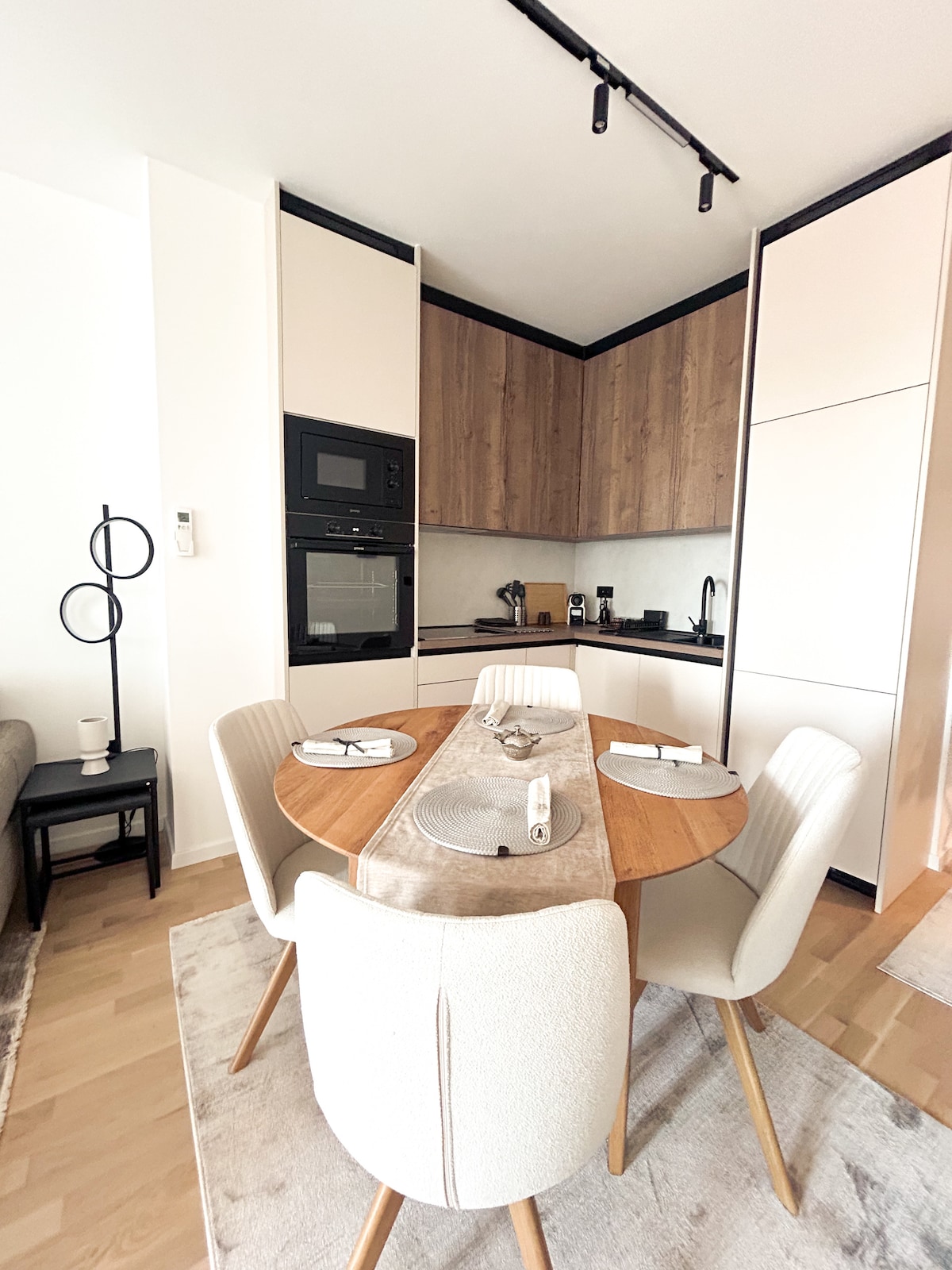 En hyggelig lejlighed, der tilbyder alt, hvad du har brug for til et behageligt ophold. Vi har tænkt over alle aspekter af vores gæsters komfort, så vi har sørget for en stor og komfortabel seng, et hyggeligt opholdsområde med kabel-tv og WiFi, et fuldt udstyret køkken og badeværelse. Udoban i moderan apartman može da ugosti do 4 osobe i sastoji se od spavaće sobe sa velikim i udobnim krevetom, dnevnog boravka sa ležajem na razvlačenje, potpuno opremljene kuhinje, trpezarije i kupatila. Apartman posjeduje kablovsku TV, klimu i WiFi.