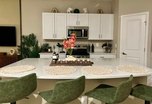 Wake up in a bright, airy three-bedroom home in a peaceful neighborhood just outside the main theme park area, surrounded by lakes and nature so you can sleep like a dream—35 minutes from Disney and close to Universal, SeaWorld, Legoland and more! This minimalist home sleeps 8 with 2.5 baths, closets in every room, and a fully equipped kitchen. Enjoy movie nights in, relax at the community pool, and explore downtown Orlando in 50 minutes. Message me with any questions. I'm here to help!