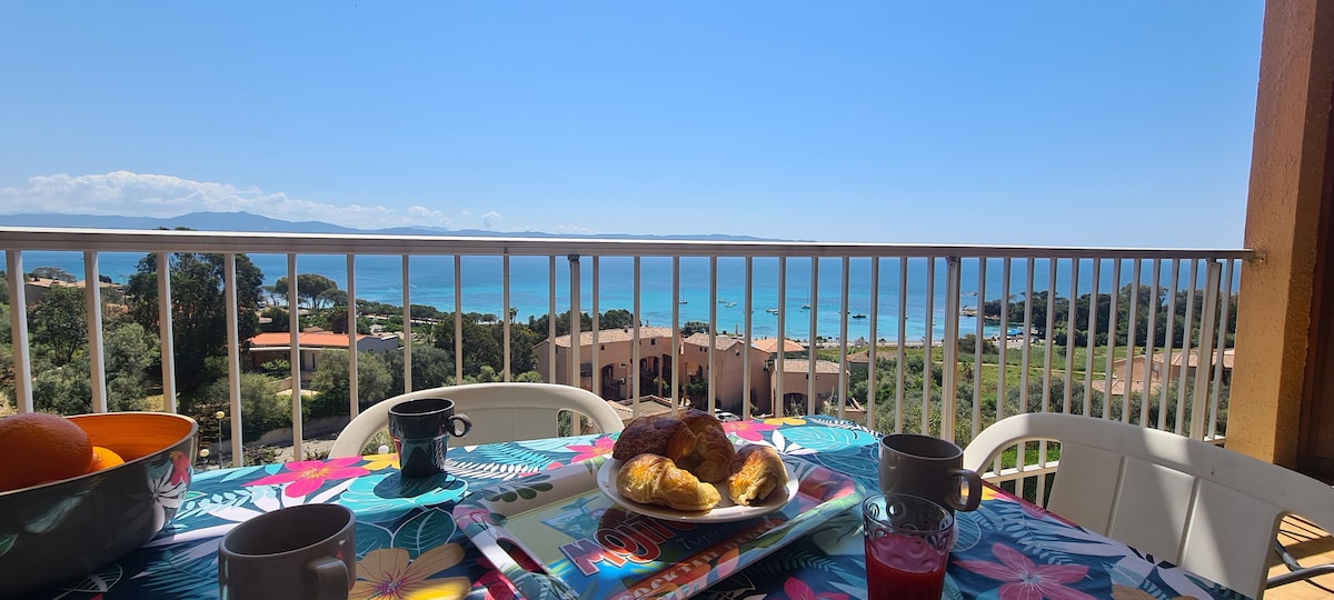 Dejligt studie med separat soveværelse og en meget smuk havudsigt. Stor og sjælden åben terrasse med udsigt over Marinella-stranden, med udsigt over Iles Sanguinaires. Rummelig loggia-stue til at slappe af i skyggen uden overforliggende nabo. Aircondition, opvaskemaskine, queensize seng (160x200), mange faciliteter osv. Strande, strandlejer og restauranter ved foden af boligen. Perfekt til par. Mulighed for op til 4 personer, med ekstra sovesofa. Meget hurtig WiFi 800 Mb! ;)