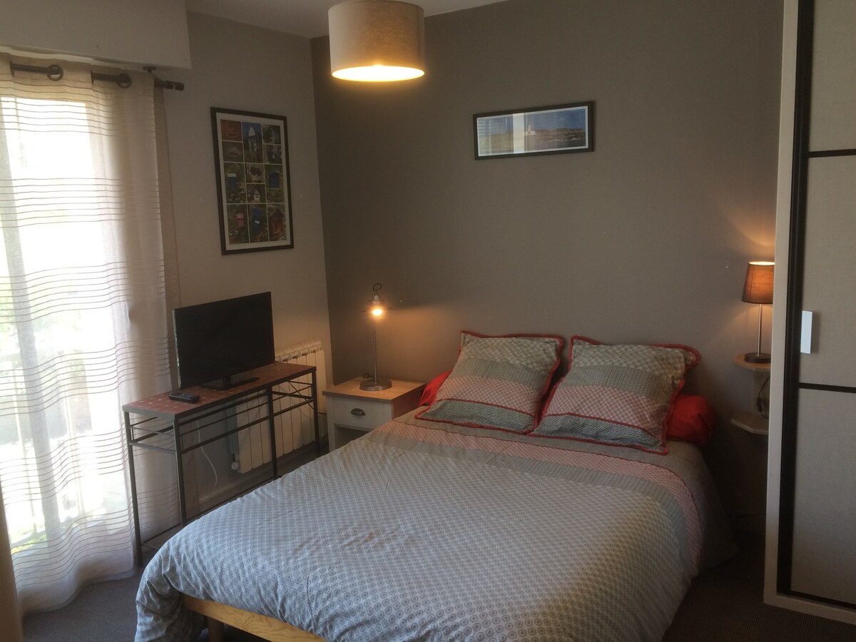 Studielejlighed, 28 m2, beliggende på 1. sal i en rolig bolig, lys, 5 min gang fra markedet, måneskinsturen og Prieuré-stranden, 10 min fra byens centrum og Écluse-stranden. Gratis parkering på gaden. Tilgængelighed: Studiet er ikke tilgængeligt for kørestolsbrugere. Der er dog en elevator i bygningen, som kræver, at man går op ad cirka ti trin for at komme til den. Uafhængig adgang er mulig via en sikker nøgleboks. Wi-fi Bedømt til 2 stjerner siden 2020.